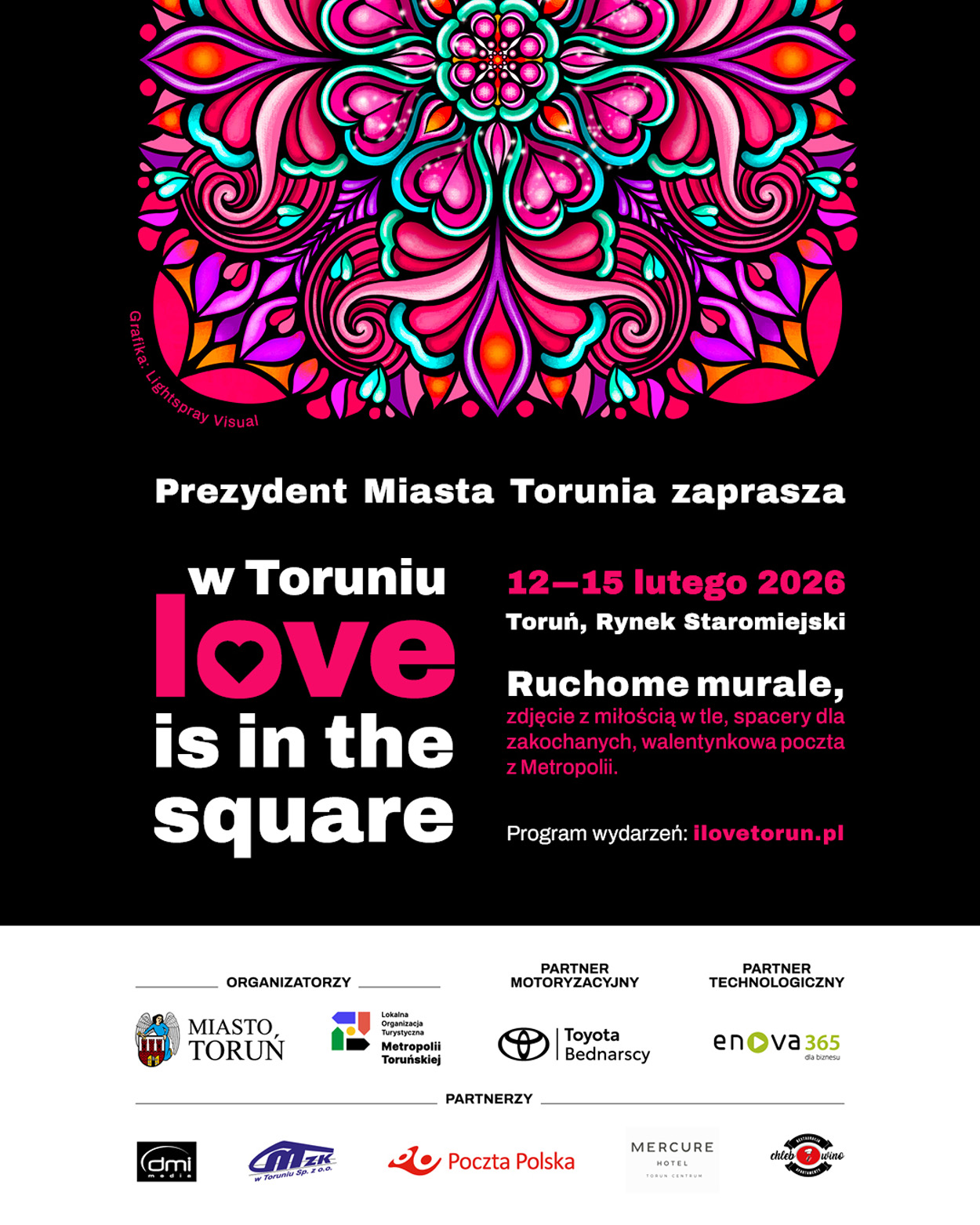 Love is in the square na Rynku Staromiejskim (12–15.02, 17:00–22:00) – ruchome murale świetlne od Lightspray Visual + muzyka = magiczne, romantyczne wieczory.