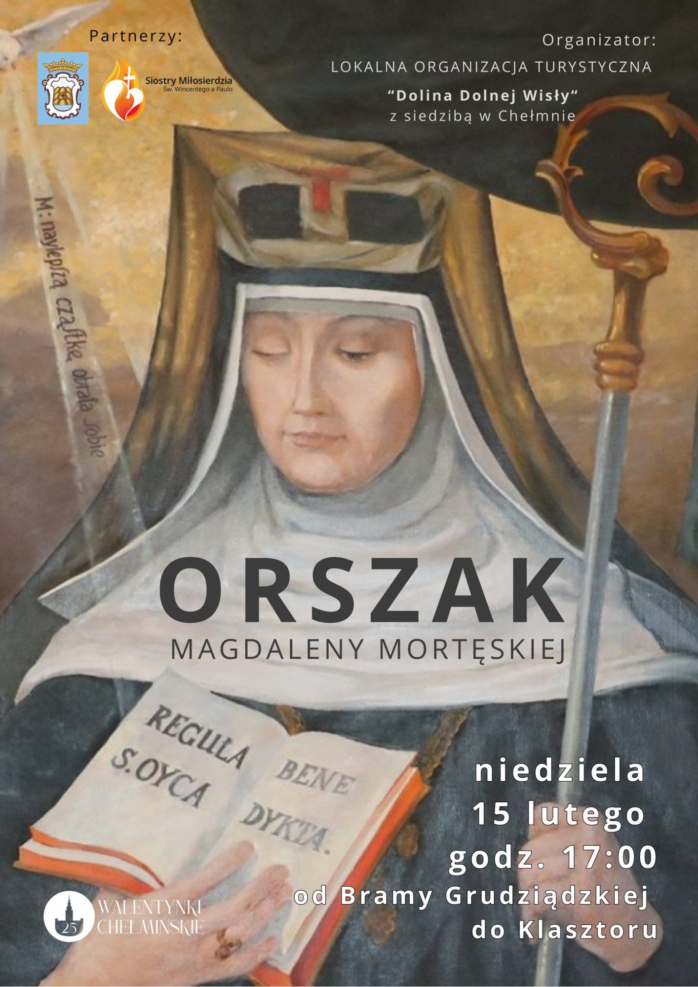 W 395. rocznicę zakończenia jej ziemskiej misji LOT Dolina Dolnej Wisły z siedzibą w Chełmnie wraz z Siostrami Miłosierdzia św. Wincentego a Paulo zapraszają na ORSZAK Ksieni Magdaleny Mortęskiej.