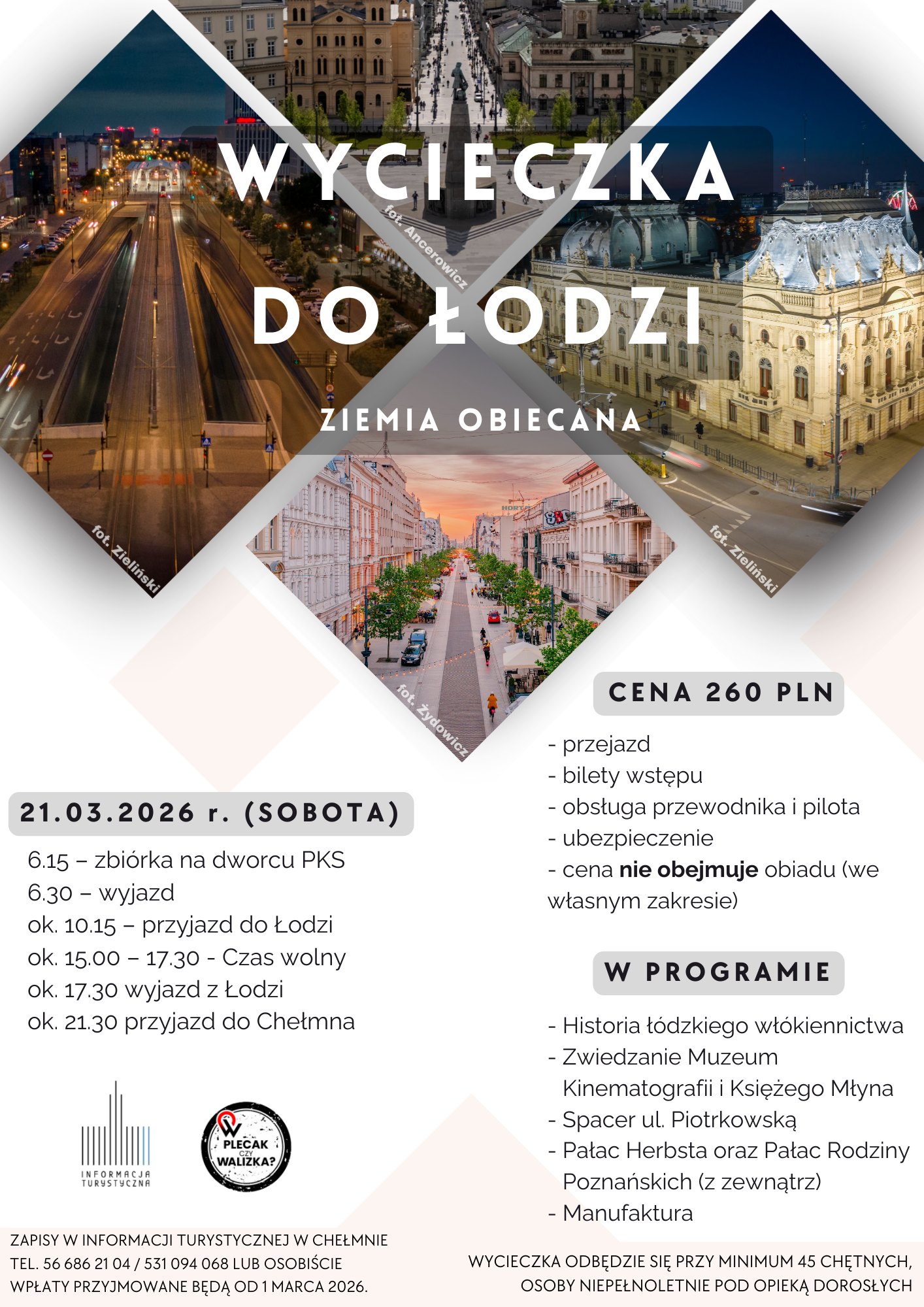 Zapisy Informacja Turystyczna w Chełmnie tel. 56 686 21 04 lub 531094068 lub osobiście