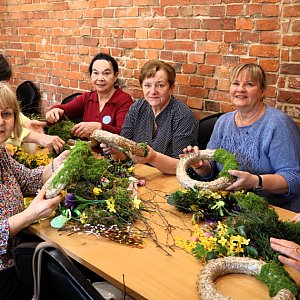 Następnie seniorzy dali się ponieść fantazji przy tworzeniu wianków wielkanocnych z prowadzącą Marta Połomska A wszystko to w ramach obszaru „kreatywność i rozwój zainteresowań” Zobaczcie sami te wyjątkowe arcydzieła