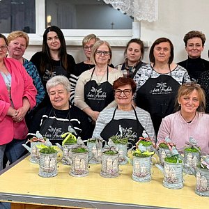 Uczestniczki z naszej gminy zmierzyły się z zadaniem przekształcenia zwykłych puszek w efektowne dekoracje. Efekty? Zachwycające! Powstały piękne „dzbanuszki z puszki”, które doskonale sprawdzą się jako wiosenne ozdoby – flowerboxy lub stylowe osłonki na doniczki