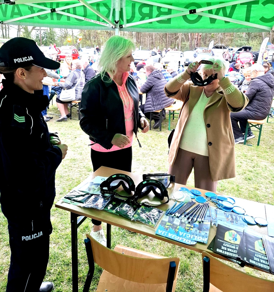 W niedzielę (19.04.26) policjanci uczestniczyli w pikniku charytatywnym w Brukach Unisławskich, angażując się w działania edukacyjne oraz profilaktyczne skierowane do lokalnej społeczności. Dużym zainteresowaniem cieszyła się możliwość wykonania odcisków palców, co szczególnie spodobało się najmłodszym, a także wykorzystanie alkogogli i narkogogli, które w obrazowy sposób pokazywały, jak substancje odurzające wpływają na percepcję i koordynację ruchową. Funkcjonariusze chętnie odpowiadali na pytania uczestników oraz dzielili się swoją wiedzą i doświadczeniem.
