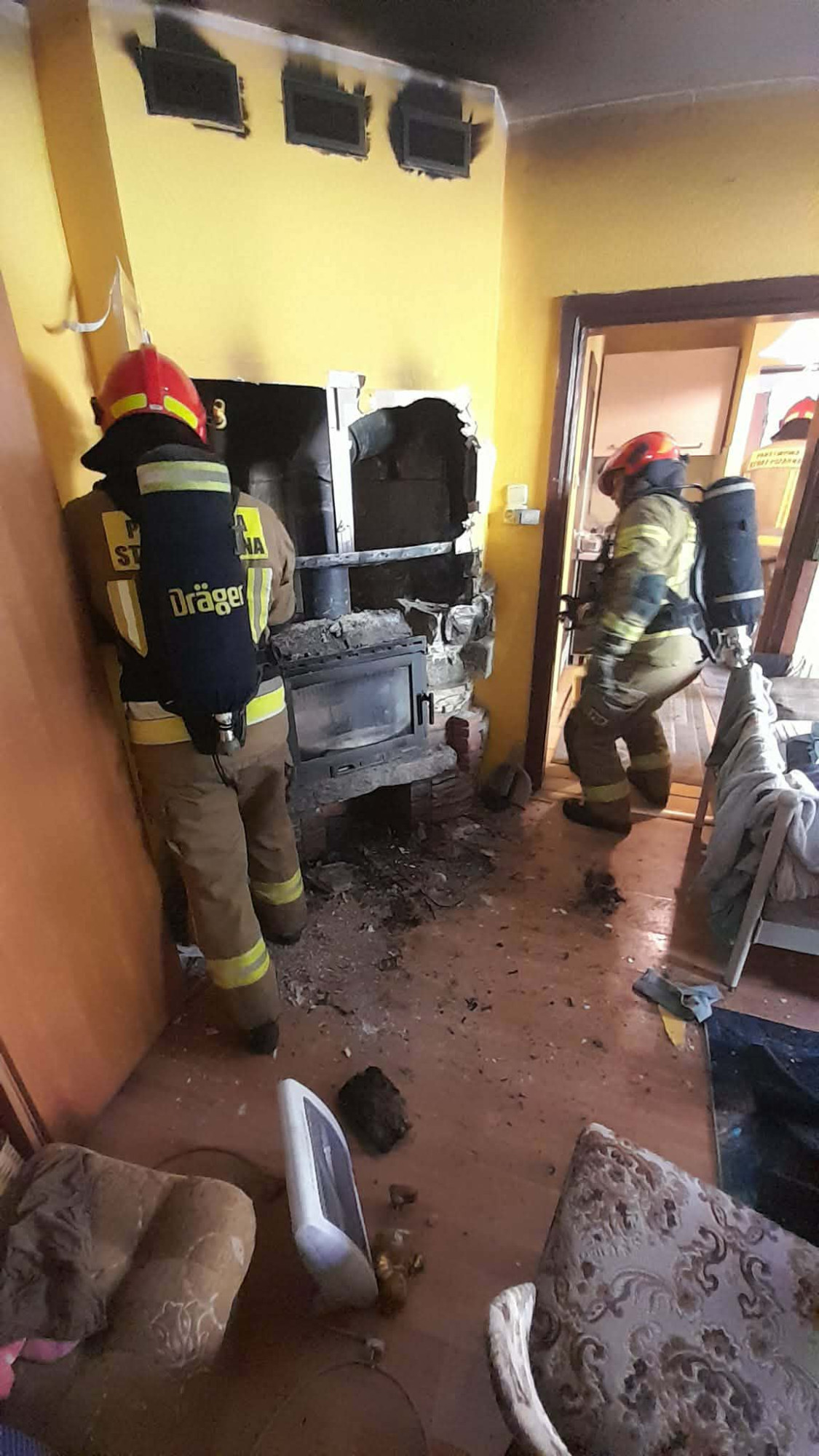 Po przybyciu na miejsce strażacy potwierdzili obecność dymu wydobywającego się z lokalu. W trakcie rozpoznania ustalono, że wewnątrz mieszkania doszło do pożaru drewnianych elementów konstrukcji kominka. Ogień nie rozprzestrzenił się na większą część mieszkania, jednak zadymienie stanowiło poważne zagrożenie dla przebywających tam osób.