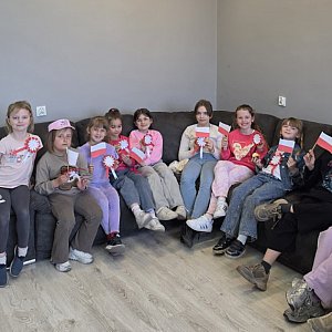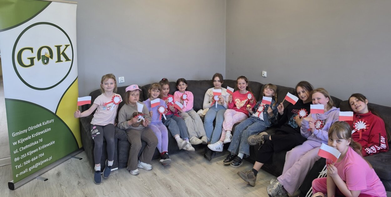 Dzieci z ogromnym zaangażowaniem tworzyły piękne kotyliony oraz własnoręcznie przygotowywały flagi Polski . Nie zabrakło także chwili na intelektualne wyzwanie — wspólnie rozwiązywaliśmy krzyżówkę z hasłami związanymi z naszą ojczyzną .