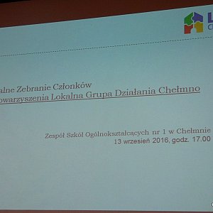 Dnia 13.09.2016 w Zespole Szkół Ogólnokształcących przy ul. Dominikańskiej odbyło się Walne Zebranie, w którym udział wzięło 34 Członków Stowarzyszenia. Zgromadzonych powitała pani Prezes Małgorzata Giżyńska. Przewodniczącym zebrania został Janusz Błażejewicz, natomiast sekretarzem pani Iga Jambor-Skupniewicz. Najważniejszym punktem spotkania było przedstawienie i przegłosowanie wniosku o wyrażenie zgody na zaciągnięcie pożyczki na pokrycie bieżących kosztów funkcjonowania biura, animacje oraz promocję. Wniosek został pozytywnie rozpatrzony. Otrzymane środki z Gminy Miasta Chełmna zostaną zwrócone po wpłynięciu na konto LGD dotacji z Urzędu Marszałkowskiego.