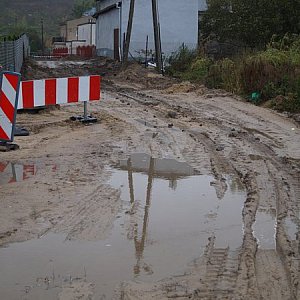 Obecnie z niewiadomych przyczyn kolejny raz roboty stoją w miejscu. Na wskutek ulewnych deszczy rozgrzebana droga zamieniła się w bagno. Mieszkańcy są zmęczeni remontem, który jedynie tylko utrudnia im poruszanie się po drodze. Sztuką jest wyjść z domu i nie utaplać się w błocie.