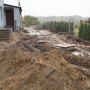 Niestety poza kilkoma wykopami , okropnym bałaganem kolejne dni nic się nie dzieje. Owszem co jakiś czas ktoś się pokręci (przeważnie operator koparki + jedna osoba), ale postępu prac nie widać. My mieszkańcy toniemy w błocie , ale nawet pomimo interwencji radnego z naszej dzielnicy zostaliśmy sami z tym problemem.