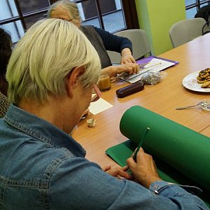 Tym razem czwartkowe spotkanie poświęcone było zajęciom plastycznym, na których panie w sympatycznej atmosferze wykonywały kartki świąteczne.