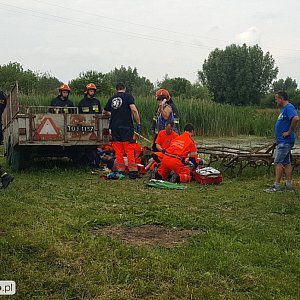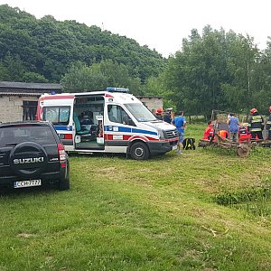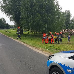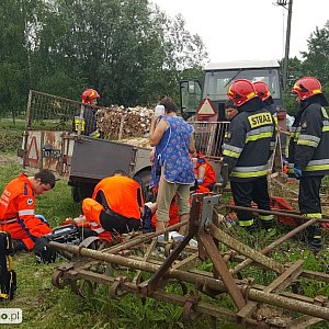 Kolejny nieszczęśliwy wypadek miał miejsce w Błachcie, gdzie ok. godz. 16:10 młody chłopak został przygnieciony przez ciągnik. Okazało się, że doznał obrażeń miednicy i on również musiał być odtransportowany śmigłowcem do grudziądzkiego szpitala. Podczas akcji ratunkowej zasłabł także ojciec 16-latka, któremu trzeba było podać tlen.