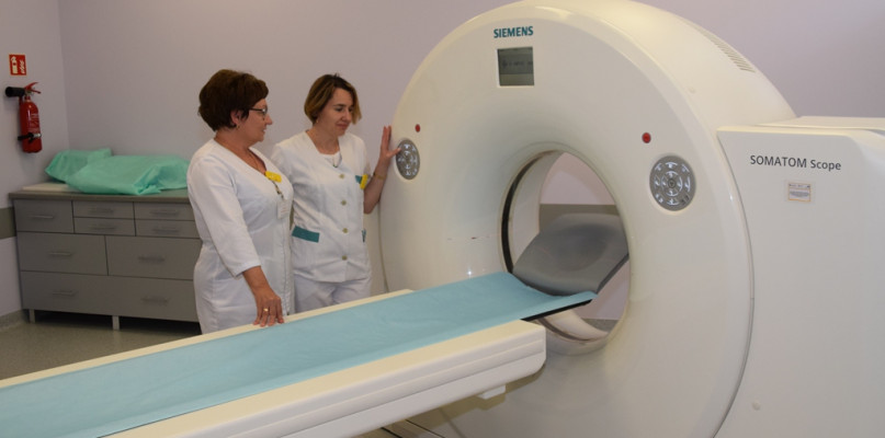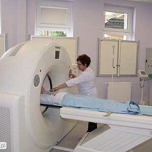 "Od poniedziałku (02.07) istnieje możliwość zrobienia badań tomografem komputerowym w naszym szpitalu dla osób posiadających skierowanie. Umowa z NFZ obowiązuje od 1 lipca. Na dzień dzisiejszy nie ma żadnych kolejek, więc pacjenci przyjmowani są praktycznie „od ręki”. Mogą oni również sami ustalić termin, który będzie im odpowiadał, czyli w czasie dogodnym dla pacjenta. Takie badanie zajmuje dłuższą chwilę (od kilku do kilkunastu minut). Nie odbywa się to tak, jak w przypadku badania RTG, gdzie praktycznie po 5 minutach jest po wszystkim. Przy tomografie komputerowym łoże musi wjechać do otworu gantry, dlatego pacjent musi zarezerwować sobie odpowiedni czas. Do chwili obecnej badani byli wyłącznie pacjenci z oddziałów szpitalnych, ponieważ NFZ nie chciał zakontraktować usług w systemie ambulatoryjnym."