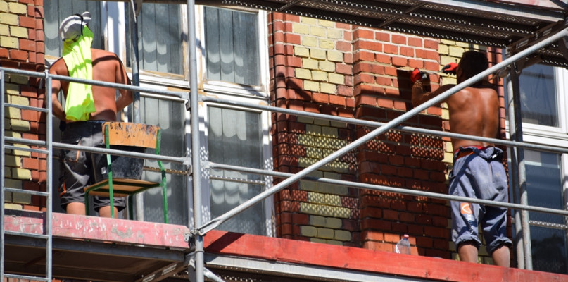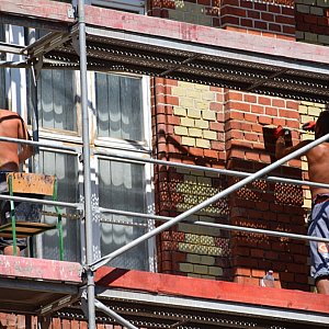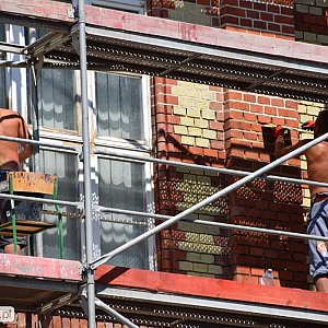 Prace remontowe zaczęły się w czerwcu - praktycznie z końcem roku szkolnego. Fachowcy twierdzą, że proces ukończenia nastąpi w sierpniu zgodnie z oczekiwaniami. Zakres prac jest bardzo szeroki. Polega na przemurowaniu kominów, kominów wentylacyjnych i ogniomurów, praktycznie wszystko to co wystaje ponad dach zostanie przebudowane. Wymieniona jest cala elewacja szkoły, która jeszcze nigdy podczas prac remontowych nie była oczyszczana - a przecież budynek powstał w 1890 roku, czyli 128 lat temu. Celem prac jest oczyszczenie, przemalowanie, fugowanie i zaimpregnowanie ogromnej powierzchni ceglanej. W tej chwili jest już wykonana cała elewacja od strony północnej oraz jedna strona zachodnia. Obecnie Firma pracuje nad główną, południową stroną budynku. Już teraz widać, że uda nam się wywiązać z zaplanowanych inwestycji w terminie. Prace są dosyć mocno zaawansowane. Według tego co mówią panowie budowlańcy, to w granicach 15.08 najpilniejsze sprawy zostaną ukończone, wtedy rozmontujemy rusztowania i "dopieścimy" mury dolne, czyli gzymsy itp.