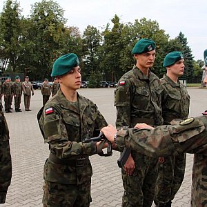 Karabinki AKMS z rąk dowódcy batalionu, któremu asystował dowódca kompanii szkolnej ppor. Monika JASIŃSKA, otrzymali szeregowi elewi: Bartosz ŁUCZAK, Dawid DRESZLER, Bartosz FABISZEWSKI i Karol CICHOCKI.