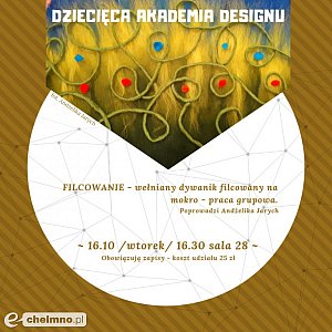 Zajęcia w każdy 3-eci wtorek miesiąca, godz. 16.30, Chełmiński Dom Kultury, sala 28, koszt udziału 25 zł/os., ilość miejsc ograniczona/obowiązują zapisy.