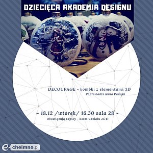 18 grudnia – bombki z elementami 3D - Anna Pawlak - Warsztaty obejmują: