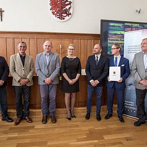 Nowe boiska, siłownie zewnętrzne i strefy aktywności - ruszył marszałkowski program rozwoju małej infrastruktury sportowej. Uroczyste wręczenie umów o dofinansowanie budowy 42 ogólnodostępnych obiektów sportowo-rekreacyjnych przedstawicielom samorządów lokalnych odbyło się dziś (17 września) w Urzędzie Marszałkowskim.