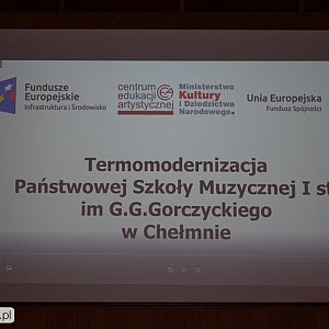 Państwowa Szkoła Muzyczna I Stopnia imieniem G.G. Gorczyckiego w Chełmnie przeszła gruntowny remont i wypiękniała. Prace modernizacyjne się zakończyły i w dniu dzisiejszym odbyła się oficjalna uroczystość otwarcia sali koncertowej. Podczas koncertu Dyrektor Placówki - pan Mieczysław Żelazko serdecznie podziękował wszystkim, którzy przyczynili się do termomodernizacji szkoły. Następnie odbył się wspaniały koncert absolwentów oraz zaproszonych wybitnie uzdolnionych artystów, którzy zaprezentowali publiczności utwory muzyki klasycznej.