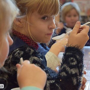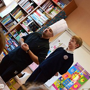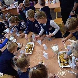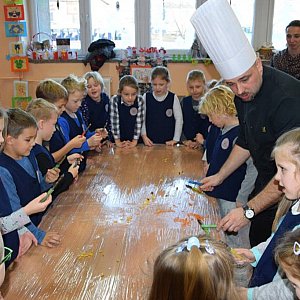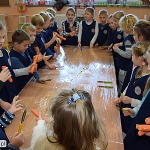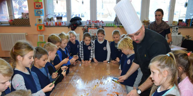 Pomimo wszechobecnych, unoszących się w powietrzu świątecznych zapachów nie zapominamy o zdrowym odżywianiu się. Zadbał o to wspaniały Kucharz Pan Marcin... Uczniowie na zajęciach z Kucharzem uczyli się jak solidnie oczyścić i obrać warzywa i owoce.
