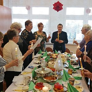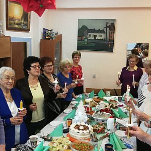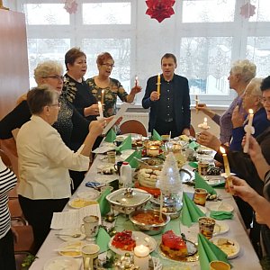 Dzisiaj w Chełmińskim Domu Kultury Klub Seniora "Zgoda" zorganozował uroczyste spotkanie Wigilijne. Serdeczne życzenia świąteczne i noworoczne złożyła uczestnikom Maria Jaworska. Było wspólne śpiewanie kolęd i poczęstunek przygotowany przez seniorki. Gościem specjalnym był Burmistrz - Artur Mikiewicz.