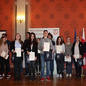 Uczestnicy konkursu pisali dyktando tematycznie związane z Unią Europejską, gdyż 1 maja obchodzić będziemy 15-lecie obecności Polski w UE. W trakcie spotkania w auli, po rozdaniu nagród ufundowanych przez Starostwo Powiatowe oraz pamiątkowych dyplomów, przedstawiono prezentację dotyczącą inwestycji, przedsięwzięć i projektów zrealizowanych dzięki dotacjom unijnym w naszym województwie, powiecie i mieście.