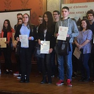 Wczoraj w naszej szkole odbyła się kolejna edycja konkursu ortograficznego O ZŁOTE PIÓRO STAROSTY CHEŁMIŃSKIEGO. W zmaganiach wzięło udział 18 uczniów ze szkół ponadgimnazjalnych (ZS nr 2, ZS CKP, Szkoły Technicznej, Katolickiego Liceum Księży Pallotynów oraz ZSO nr 1. Zwycięzcą konkursu i mistrzem ortografii został Michał Węglowski, uczeń Zespołu Szkół nr 2 im. Adama Mickiewicza w Chełmnie, a na drugim i trzecim miejscu uplasowały się licealistki ze szkoły katolickiej - Iga Stadnicka-Kolendo oraz Karolina Kluczyńska. Serdecznie gratulujemy laureatom.