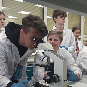 Klasa VIIIa uczestniczyła w Bydgoskim Festiwalu Nauki i były to nie tyle wykłady a doświadczenia w Zakładzie Mikrobiologii Uniwersytetu Kazimierza Wielkiego. Stanęliśmy oko w oko z mikrobami i sprawdzaliśmy czy każdy odczuwa gorzki smak w taki sam sposób. Po prostu poznaliśmy tajniki mikrobiologii od „kuchni”.