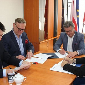 W dniu dzisiejszym Starosta Chełmiński Zdzisław Gamański w obecności Mariusza Kalkiewicza Dyrektora Powiatowego Zarządu Dróg w Chełmnie podpisał umowę na przebudowę drogi powiatowej Starogród- Kijewo Królewskie z przedstawicielami wykonawcy robót, którym jest Przedsiębiorstwo Budownictwa Drogowo- Inżynieryjnego S.A. w Toruniu.