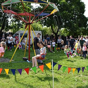 Sielski Dzień Dziecka udał się w 100%. Osada Rycerska tętniła życiem i wszędzie widać było uśmiechnięte miny szczęśliwych uczestników zabawy. Od godz. 13:00 można było korzystać z wielu atrakcji podczas sielskiego pikniku. Był dmuchany park rozrywki, darmowa wata cukrowa i cukierki, foto-stoisko i wielka kolorowanka. Gry i animacje dla maluchów przygotowała Grupa Eventowa FUNimiki.