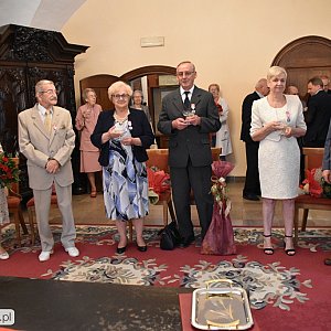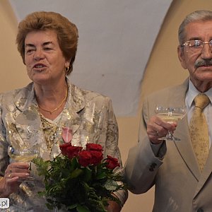Artur Mikiewicz pogratulował Jubilatom, którzy tak wiele lat dzielą wspólnie troski i radości życia dla dobra rodziny i wychowania dzieci na prawych obywateli naszej Ojczyzny. Podał przykład Jubilatów, jako wzór dla tych wszystkich, którzy decydują się wiązać węzłem małżeńskim.