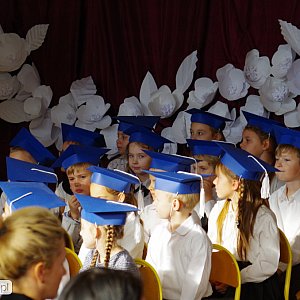 Pierwszoklasiści ślubowali na sztandar szkoły. Następnie Dyrekcja dokonała aktu pasowania na uczniów. Uczniowie otrzymali pamiątkowe dyplomy i upominki. Natomiast klasy trzecie przygotowały młodszym kolegom kolorowe zakładki do książek wykonane własnoręcznie. Zakładki te na pewno przydadzą się im w klasie pierwszej.