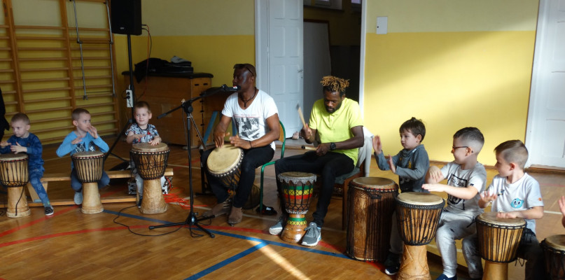 Djemmbe, marakasy, dum-dum i balafony - to instrumenty, na których uczyliśmy się grać na warsztatach gry na bębnach podczas koncertu "Dotyk Afryki". A pomagali nam: Ricky Lion i Kobe.