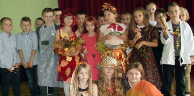 Małe formy teatralne klasy 3a ze Szkoły Podstawowej nr 1. Wiersz Doroty Gellner "Jesień u fryzjera".