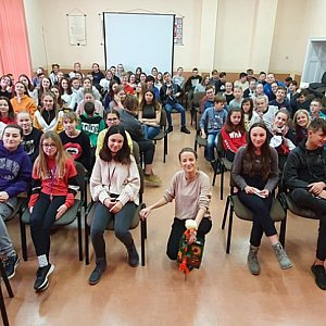 Urszula Dębska to znana aktorka, która zawitała do Chełmna, aby wraz z kolegami (Kacprem Kuszewskim i Waldemarem Obłozą) wystąpić w sztuce pt. "Lista męskich życzeń". Na spotkaniu z młodzieżą w Szkole Podstawowej nr 2 gwiazda opowiadała o swojej drodze aktorskiej, grze w teatrze, serialach i filmach.