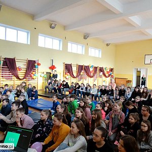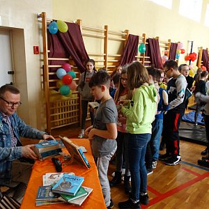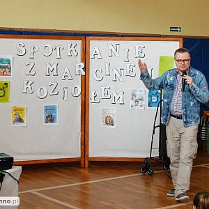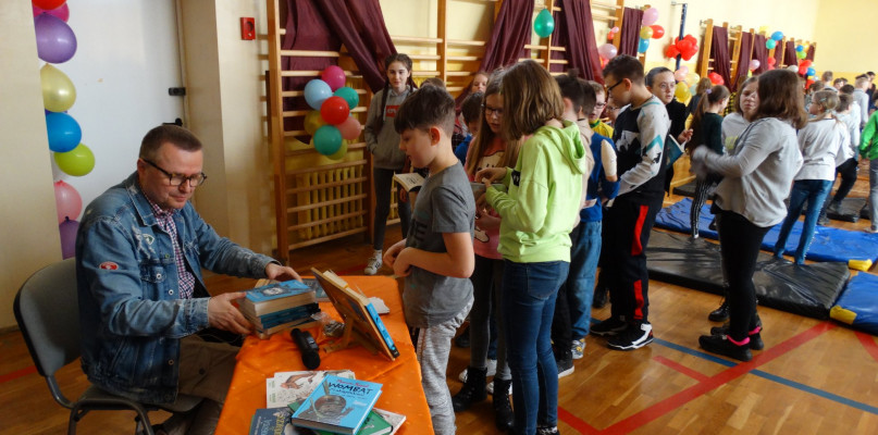 Uczniowie klas drugich i trzecich mieli okazję posłuchać o zaczarowanym świecie koni poznając bohaterów cyklu „Stajni pod tęczą”. Wszyscy mieli również okazję posłuchać jak Wombat Maksymilian nauczył się latać. Miny i komentarze dzieci świadczyły o piorunującym wrażeniu,a kolejka po dedykacje do zakupionych książek i autografy nie miała końca. Pani Marcinie, dziękujemy za zabranie nas w cudowny świat przygód