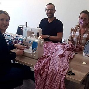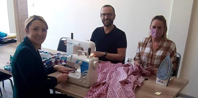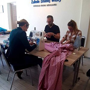 Zorganizowaliśmy niezbędny sprzęt, niektórzy z nas musieli przypomnieć sobie, jak to te nitki się nawlekało. Moc i wiara w lepsze jutro jest z nami, brakuje tylko tkanin!!