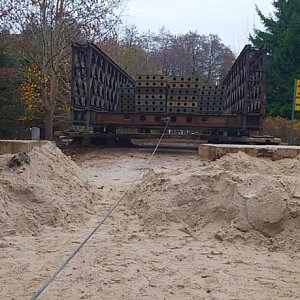 Wyłączenie z użytkowania dotychczasowej przeprawy wymuszało objazd wynoszący 38km. Żołnierze 3. Batalionu Drogowo-Mosrowego /2. pułku saperów/ zbudowali stalowy most tymczasowy z konstrukcji DMS-65. W pierwszej kolejności rozebrano dotychczasową przeprawę, a następnie rozpoczęto prace montażowe.