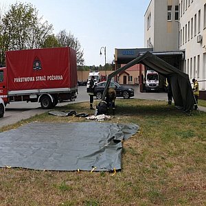 Dalsze działania w walce z zagrożeniem wywołującym chorobę Covid-19 na terenie powiatu chełmińskiego w związku ze stanem epidemii w kraju prowadzą jednostki ochrony przeciwpożarowej. Funkcjonariusze KP PSP w Chełmnie w dniu 2 maja rozstawili dodatkowy namiot na terenie szpitala powiatowego w Chełmnie.