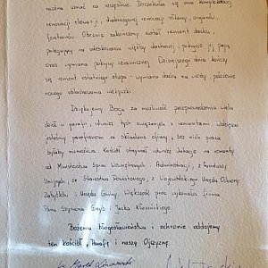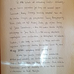 W kapsule czasu został zamknięty list podpisany przez Księdza Proboszcza Marka Linowieckiego, Księdza Paweł Maciejko, wykonawcę prac Szymona Grzyba oraz Wójta Jakuba Danielewicza.