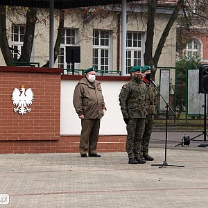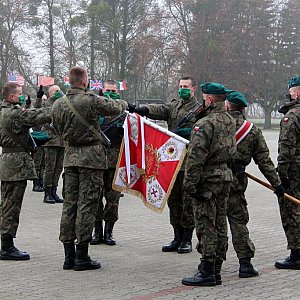Następnie głos zabrał ppłk Sylwester Drozd. Dowódca zaznaczył, że dzisiejsze święto w tym szczególnym czasie pandemii zorganizowane jest niestety bez udziału najbliższych żołnierzy składających przysięgę i podkreślił że: