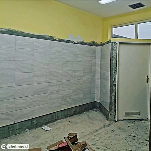Remont przechodzą szatnie oraz sanitariaty, które pokrywamy nowymi płytkami.