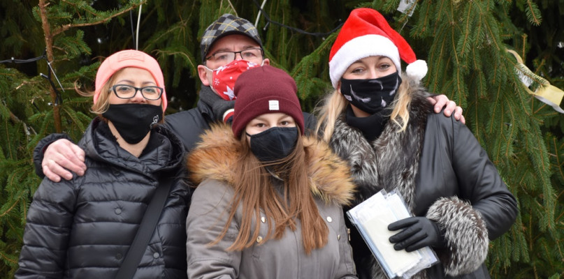 Wręczono 200 kompletów, w których znajdowały się maseczki ochronne oraz życzenia świąteczne i opłatek na stoły Wigilijne.