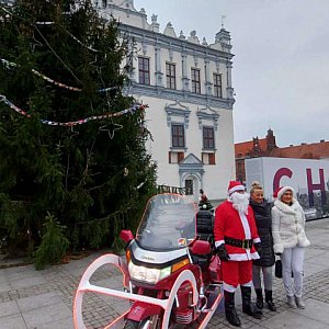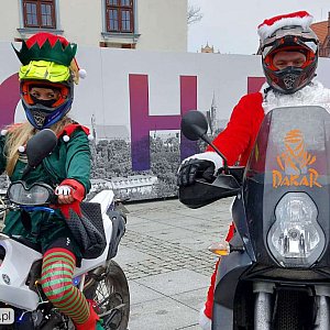 Obok ciekawie prezentującego się pojazdu Świętego można było zobaczyć oryginalnie ubrane elfy i pomocników Mikołaja . Samych Mikołajów też zjawiło się kilku.
