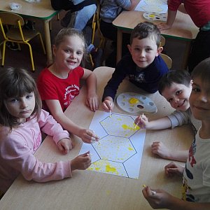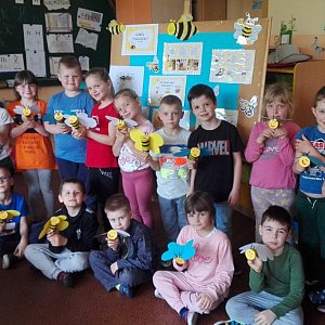 Światowy Dzień Pszczoły był okazją dla Smerfów, aby w oparciu o prezentację, rozmowę - utrwalić sobie temat: Jak powstaje miód, co dają nam pszczoły, kto to jest pszczelarz oraz pasieka.