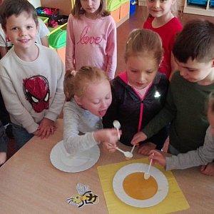 Wiedzą jakim wartościowym owadem jest pszczoła dla człowieka i przyrody, i jak ją chronić przed wyginięciem! A miodzik od Kubusia Puchatka smakował wyśmienicie.