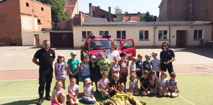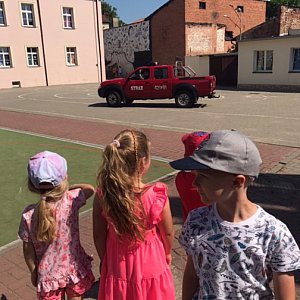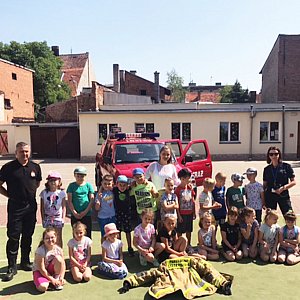 Dnia 17.06.2020 grupy: „Zające", „Bratki" oraz „Sówki" z Miejskiego Przedszkola Tęczowy Zakątek miały możliwość ugoszczenia Pani sierż. szt. Paulinę Kufel - Policjantkę z Komendy Powiatowej w Chełmnie oraz Pana st. kpt. inż. Artura Tokarczyka- Strażaka z Komendy Powiatowej Straży Pożarnej w Chełmnie.