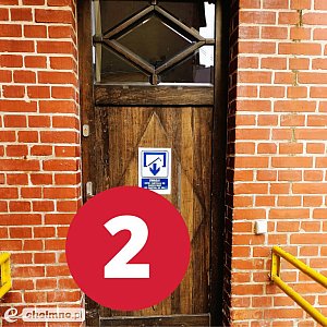 Z kolei korzystając z podnośnika zewnętrznego (ulokowany przy drewnianym wejściu os trony Bramy Grudziądzkiej) dostaniecie się do części urzędu, w której mieści się Zakład Ubezpieczeń Społecznych, Urząd Stanu Cywilnego, Referat Gospodarowania Nieruchomościami oraz Wydziału Gospodarki Miejskiej i Ochrony Środowiska (1).