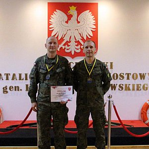 Nasi pływacy „błysnęli” znakomitą formą. Szer. PAWEŁCZAK zdobył złoty medal w sztafecie 4x50m stylem dowolnym, natomiast st. sierż. Maciejewski stanął na najwyższym stopniu podium w wyścigu sztafetowym 4x50m stylem zmiennym oraz indywidualnie „dorzucił srebro” w konkurencji 50m stylem grzbietowym. Nasi pływacy dzięki swojej postawie walnie przyczynili się do zwycięstwa 2 Mazowieckiego Pułku Saperów w klasyfikacji drużynowej mistrzostw. Serdecznie gratulujemy i liczymy na kolejne sukcesy.