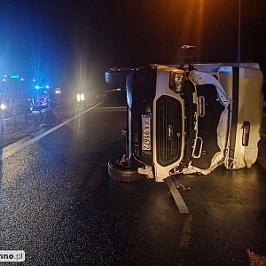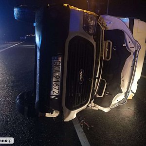 Dzisiaj w nocy doszło do wypadku na 115 km autostrady A1. Bus Ford Transit przewrócił się na drodze w Drzonowie (gmina Lisewo) i zablokował pasy ruchu w kierunku Gdańska.