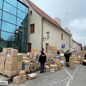 -Wspaniała ekipa z Grudziądzkiej 36 oraz strażacy, uczniowie chełmińskiej mundurówki i wolontariusze pakują na palety artykuły dla miasta partnerskiego Kaniów na Ukrainie. Szacunek dla wszystkich, którzy dostarczyli dary dla naszych ukraińskich przyjaciół. Jesteście wielcy! Zapraszamy na Rynek dzisiaj o 20.00. Bądźmy razem dla Ukrainy!- pisze na swoim FB Artur Mikiewicz