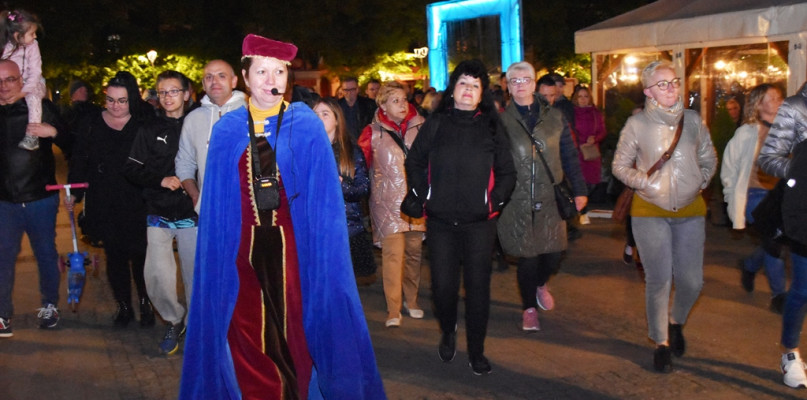 Na Chełmińskim Rynku zebrała się duża grupa osób zainteresowanych historią naszego pięknego miasta. W blasku wieczornych lamp nastrojowo mijał czas na zwiedzaniu ciekawych zakątków.
