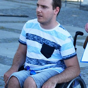 W imieniu osób niepełnosprawnych wypowiadał się Jakub Hartrich, który tłumaczył, w jak trudnej sytuacji znajdują się osoby w podobnej do niego sytuacji życiowej.